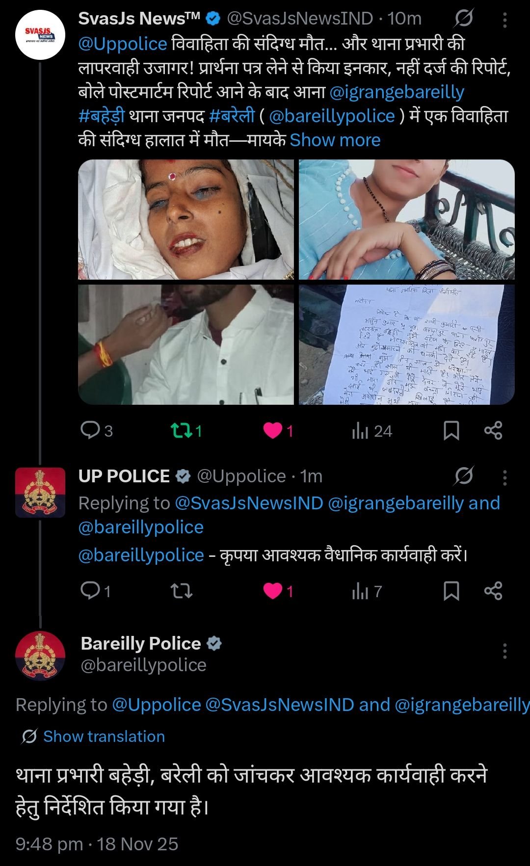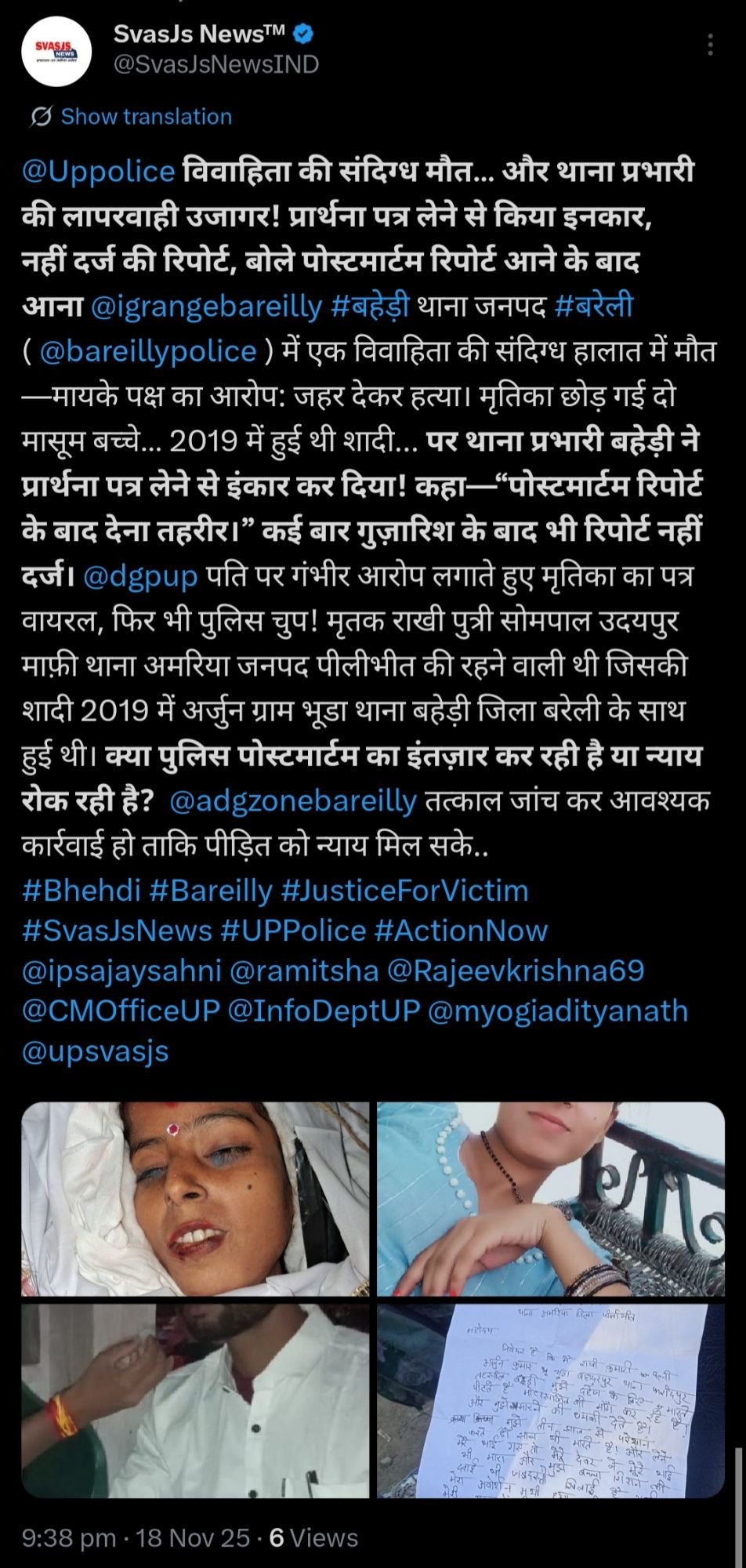 ➡️ मायके पक्ष की तहरीर तुरंत दर्ज कर कार्रवाई शुरू की जाए।