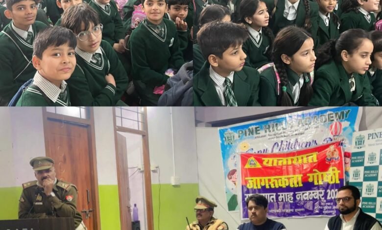 पाइन हिल्स एकेडमी में ट्रैफ़िक नियमों की जानकारी देने पहुंचे यातायात निरीक्षक
