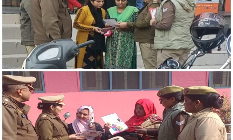 सहारनपुर आज दिनांक 05/12/2025 को थाना महिला थाना जनपद सहारनपुर में एंटी रोमियो टीम एवं मिशन शक्ति टीम द्वारा महिला उपनिरीक्षक कुमुद रानी, उ0नि0 सुनील कुमार, महिला हेड कांस्टेबल 706 सुंदरी व म0हो0गा0 पूनम, म0हो0गा0 ममता के द्वारा हक़ीक़त नगर चौक, रामलीला मैदान, सदर तिराहा, खलासी लाइन, देहरादून चौक, चौधरी चरण सिंह चौक एसएएम इंटर कॉलेज, गुरुद्वारा रोड, कुतुबशेर चौक, दर्पण तिराहा, शारदा नगर, कोर्ट रोड, खुर्जा मिल, पटेल नगर, कल्पना तिराहा, लकड़ी का पुल, चंद्र नगर, कलेक्ट्रेट तिराहा, भगत सिंह रोड, नेहरू मार्केट, सुपर बाजार, प्रताप मार्केट, किशनपुरा, साकेत कॉलोनी, नवाबगंज, शहीद गंज, नकाशा बाजार, मटिया महल, पुरानी मंडी, आलमपुर, सखर नगर, अंबाला रोड, बीजोपुरी, रामनगर, घंटाघर, शिवपुरी, पूल जोगियान, रेलवे स्टेशन, बस स्टैंड आदि व्यस्त स्थानों पर जाकर अभियान मिशन शक्ति फेज 5.0 के तहत महिलाओं एवं लड़कियों को डिजिटल अरेस्टिंग व सशक्तिकरण एवं सरकार द्वारा चलाई गयी योजनाओं और बच्चों के लिए चलाए जा रहे कार्यक्रमों के बारे मे बताया एवं उनके अधिकारों, सुरक्षा और संरक्षण के बारे में जागरुक किया गया एवं स्कूली बच्चों को गुड टच बेड टच के बारे में बताया गया एवं साईबर फ्राड एवं साईबर क्राईम के बारे में भी जागरुक किया गया, सरकार द्वारा जारी की गयी हेल्पलाईन नंबर 1930, 1090, 1098, 112, 102, 108, 181 एवं साइबर अपराध आदि के बारे मे जानकारी दी गयी व पंपलेट वितरित किए गए।