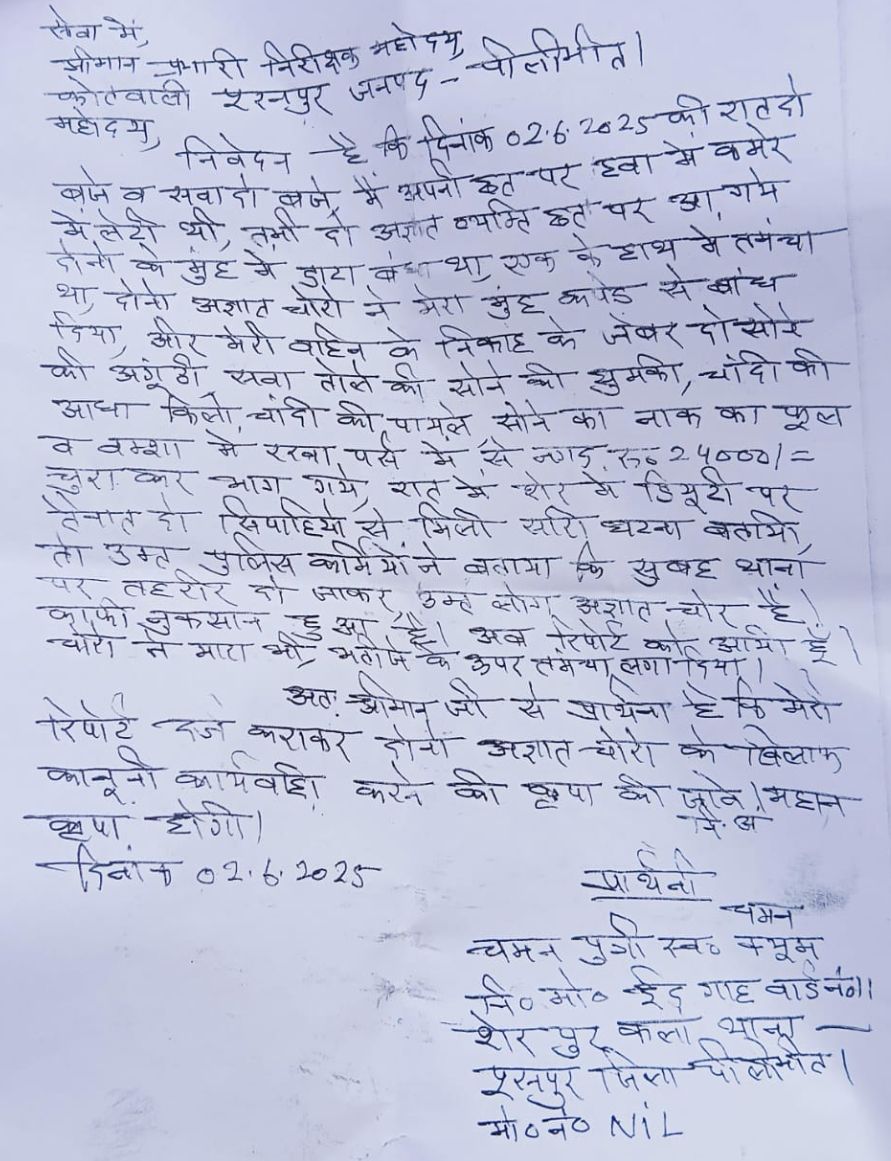 प्रत्यक्षदर्शियों के अनुसार, आधी रात के बाद कुछ अज्ञात बदमाश एक घर में घुस आए। हथियारों से लैस इन दरिंदों ने महिला का मुंह कपड़े से कसकर बांध दिया और गनपॉइंट पर पूरे घर को खंगाल डाला। लुटेरों ने सोने-चांदी के कीमती आभूषण और नकदी पर हाथ साफ कर लिया।