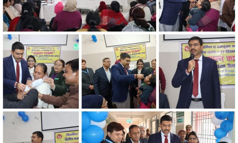 सहारनपुर ज़िलाधिकारी मनीष बंसल द्वारा ज़िला महिला चिकित्सालय में विटामिन ए सम्पूरण अभियान के द्वितीय चरण-दिसम्बर 2025 का उद्घाटन फीता काटकर किया गया। उद्घाटन के अवसर पर जिलाधिकारी द्वारा 09 माह से 05 वर्ष तक के बच्चों को विटामिन ए की खुराक पिलायी गयी।जिलाधिकारी द्वारा अपने सम्बोधन में बताया गया कि विटामिन ए एक शिशु सुरक्षा कवच है, जो कि प्रत्येक बच्चे तक पहुंचाया जाना अत्यन्त आवश्यक है। उनके द्वारा सभी जनपदवासियों से अपील की गयी कि अपने 09 माह से 05 वर्ष तक के बच्चों को विटामिन ए की खुराक अवश्य पिलायें। उनके द्वारा प्रत्येक टीकाकरण कर्मी से अपेक्षा की गयी कि आप जनता और स्वास्थ्य विभाग के बीच की कड़ी है, आपके कंधों पर बच्चों के स्वास्थ्य की महत्वपूर्ण जिम्मेदारी है, आप इस जिम्मेदारी को पूर्ण निष्ठा व ईमानदारी से निभाते हुये बच्चों को आच्छादित करायें तथा भारत एवं राज्य सरकार की महत्वपूर्ण आकांक्षाओं व लक्ष्य को पूर्ण करने में भागीदारी निभायें।
