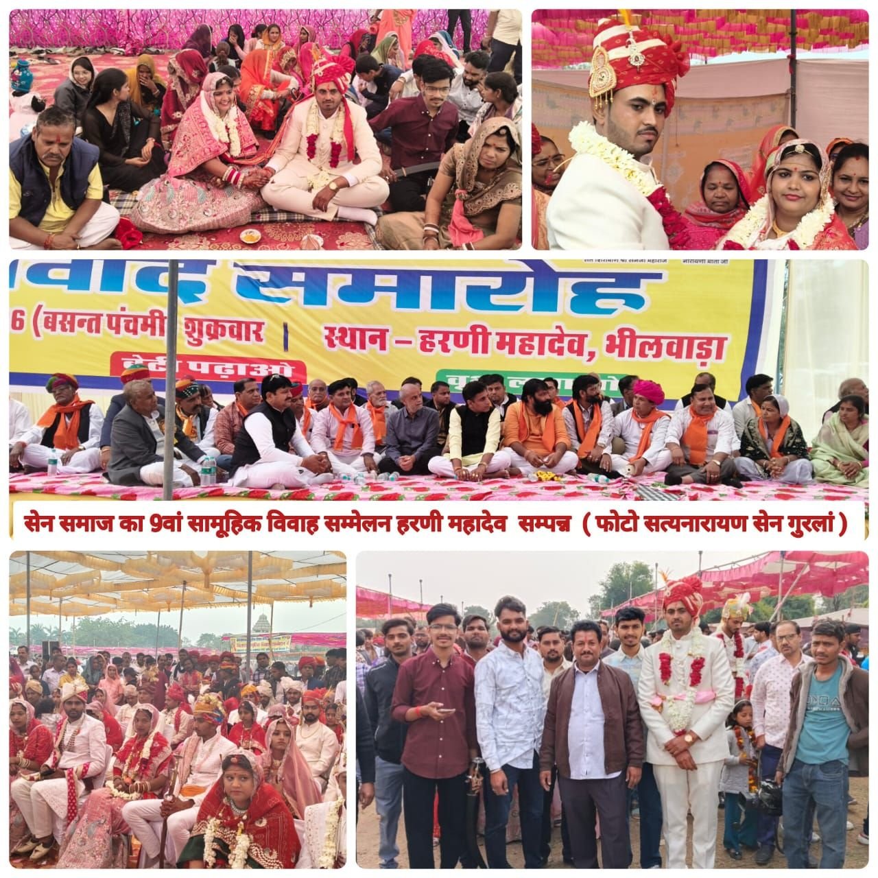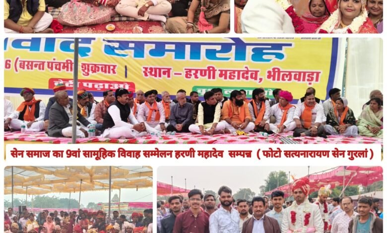 SvasJsNews | भीलवाड़ा- भीलवाड़ा के हरनी महादेव मेला ग्राउंड में सेन समाज सामूहिक विवाह सम्मेलन समिति द्वारा बसंत पंचमी के पावन अवसर पर आयोजित 9वां सामूहिक विवाह सम्मेलन भव्यता और गरिमा के साथ संपन्न हुआ। इस ऐतिहासिक आयोजन में सेन समाज के 49 नवयुगलों ने एक साथ वैदिक रीति-रिवाजों के अनुसार सात फेरे लेकर अपने दांपत्य जीवन की शुरुआत की।