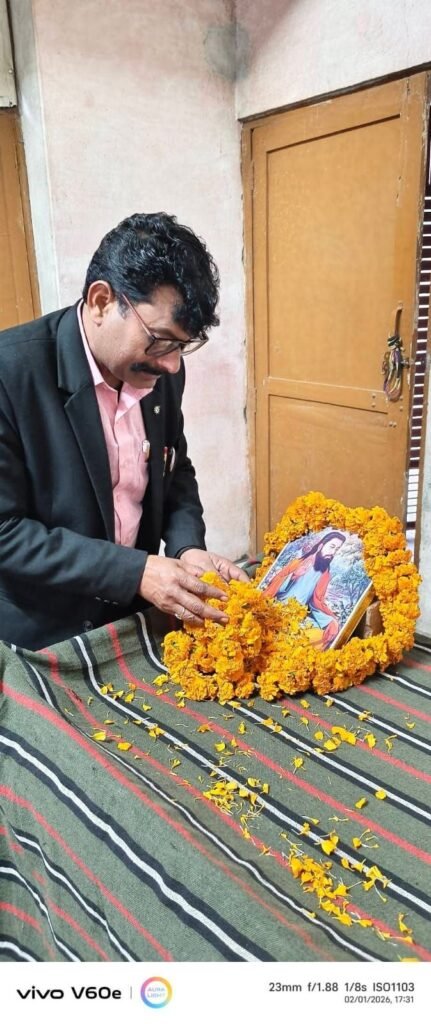 पीलीभीत – जनपद के ग्राम पंचायत देशनगर खपरैल गौटिया सनातन नगर कॉलोनी माधोटांडा पीलीभीत रोड निकट रेलवे क्रॉसिंग में रविवार को सामाजिक संगठन जन कल्याण सुरक्षा संघ जेकेएसएस के तत्वाधान में संस्था के पदाधिकारियों ने मासिक बैठक में माघ पूर्णिमा पर देश के महान संत और समाज सुधारक संत शिरोमणि गुरु रविदास जी की 649वीं जयंती बड़ी धूमधाम से मनाई कार्यक्रम में पहुंचे सभी ने उनके चित्र पर पुष्पांजलि अर्पित कर नमन किया संस्था के राष्ट्रीय अध्यक्ष ब्रहमपाल सिंह ने संबोधित करते हुए कहा कि रविदास जी का मानना था कि कोई भी व्यक्ति जन्म से नहीं बल्कि अपने कर्मों से महान बनता है उन्होंने ऊंच-नीच और छुआछूत जैसी सामाजिक बुराइयों का कड़ा विरोध किया वे खुद जूते बनाने का काम करते थे और उन्होंने कभी अपने काम को छोटा नहीं समझा उनका मानना था कि ईमानदारी से किया गया परिश्रम ही सच्ची पूजा है उनका प्रसिद्ध कथन (मन चंगा तो कठौती में गंगा) इसी बात का प्रतीक है कि अगर आपका मन पवित्र है तो ईश्वर आपके पास ही है और कहा कि सभी पदाधिकारीयों को उनके विचारों पर चलने का संकल्प लेना चाहिए कहा कि आपका संस्था सभी जाति सभी धर्म सभी वर्ग के लिए कार्य करता है समाज के दबे कुचले शोषित वंचित किसान मजदूर कमजोर वर्ग के लोगों की हर संभव मदद करने का संपूर्ण भारत में कार्य कर रहा है सभी पदाधिकारीगणों को संस्था से ज्यादा से ज्यादा लोगों को सदस्यों को सदस्यता दिलाने का काम करना चाहिए जिससे कि समाज की और बेहतर मदद हो सके और समाज के आखिरी पायदान पर खड़े लोगों को उसका लाभ मिल सके कार्यक्रम में मुख्य रूप से शमशाद अंसारी प्रदेश कार्यकारिणी सदस्य उप्र बृजेश सिंह जिला सचिव पूनम देवी वर्मा वरिष्ठ जिला उपाध्यक्ष महिला काशीराम यादव तहसील उपाध्यक्ष सदर पीलीभीत भूपराम पासवान तहसील सचिव कलीनगर एडवोकेट सूरजपाल वर्मा तहसील सदर कानूनी सलाहकार होरीलाल वर्मा कार्यालय असिस्टेंट कमला देवी न्याय पंचायत अध्यक्ष महिला टोडर पुर छाया देवी नगर सचिव महिला पीलीभीत अरविंद कुमार मौर्य सुखबीर कुमार यादव तेजपाल वर्मा रमेश चंद्र पवन पाल सहित आदि कार्यकर्ता उपस्थित रहे!