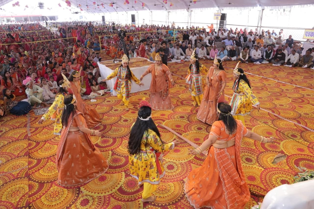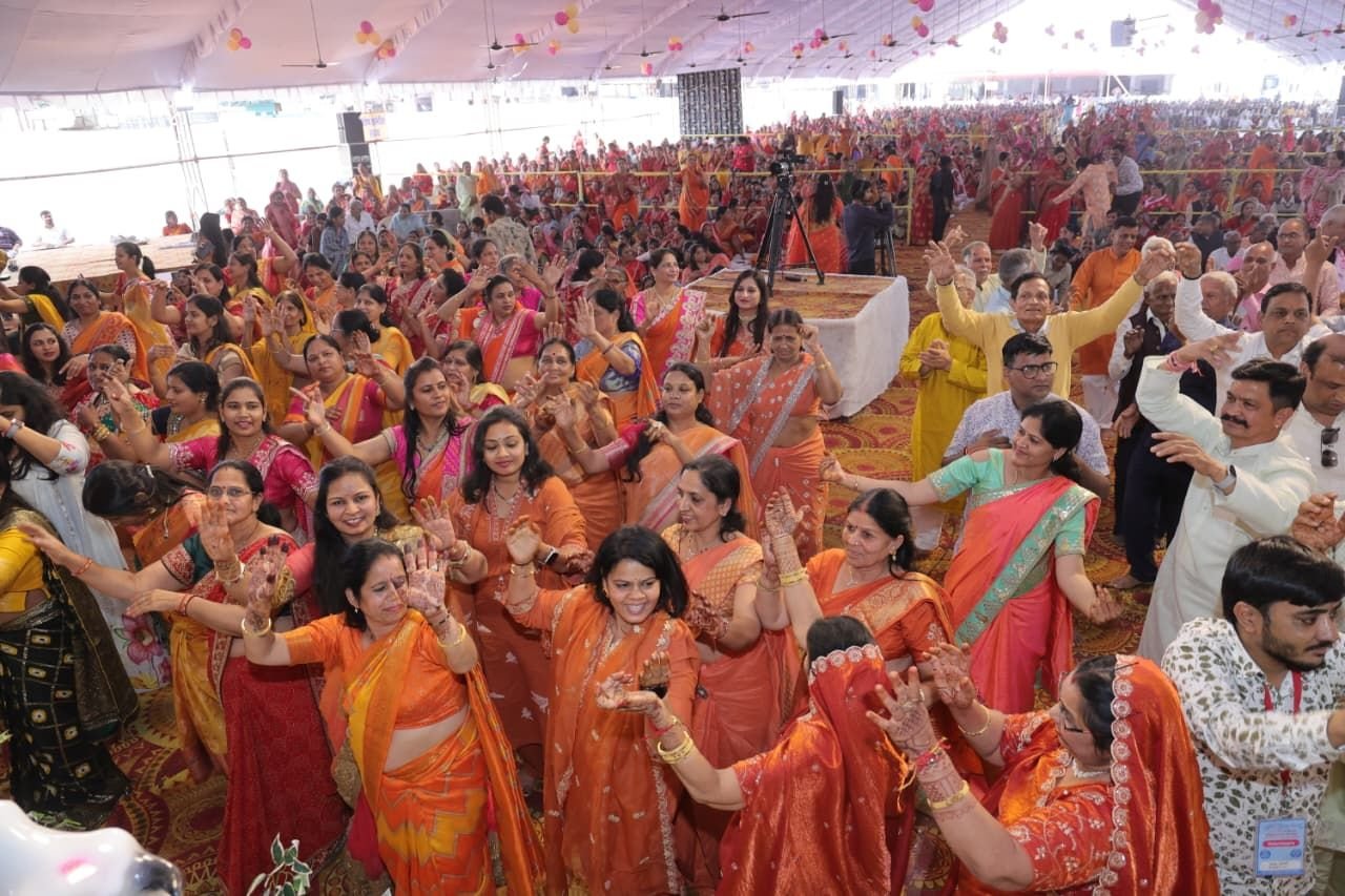 कथा के दौरान संगीतमय भजनों की अविरल धारा बहती रही। “आओ सखी मुझे मेहंदी लगा दो, मुझे श्याम सुंदर की दुल्हन बना दो”, “बन्नो मारो द्वारिकानाथ, बन्नी तो मारी रूकमण लाड़ली”, “ये तो प्रेम की बात है, बंदगी तेरे बस की नहीं है” जैसे भजनों पर श्रद्धालु अपनी जगह छोड़ नृत्य करने लगे। संत दिग्विजयरामजी द्वारा प्रस्तुत “राधा नाचे, कृष्ण नाचे, नाचे गोपीजन” भजन पर पूरा कथा मंडप मानो महारास मंडप में परिवर्तित हो गया।