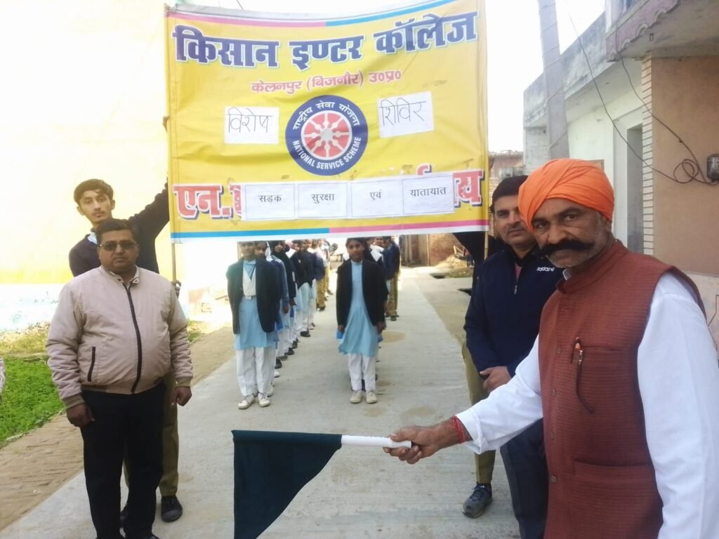 मौहम्मद अरशद तहसील प्रभारी चांदपुर।चांदपुर।से सटे गाँव केलनपुर मे सड़क सुरक्षा दिवस का मां सरस्वती के आगे दीप जलाकर शुभारंभ समाजसेवी चौधरी वीर सिंह ने किया!
