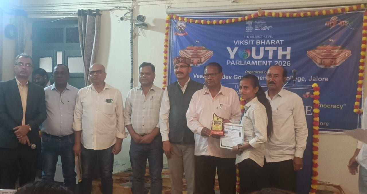 जालोर जिले के छोटे से गांव मायलावास की प्रतिभाशाली बेटी सागर कंवर सोलंकी ने अपनी वाकपटुता और गहन चिंतन क्षमता से जिले का गौरव बढ़ाया है। भारत सरकार के युवा कार्यक्रम एवं खेल मंत्रालय तथा मेरा भारत अभियान के तत्वावधान में आयोजित ‘विकसित भारत युवा संसद’ प्रतियोगिता में सागर कंवर ने जिला स्तर पर प्रथम स्थान प्राप्त कर राज्य स्तर पर विधानसभा के लिए अपना स्थान सुनिश्चित किया है। अब वे राज्य स्तरीय मंच पर जालोर जिले का प्रतिनिधित्व करेंगी। जिला स्तरीय प्रतियोगिता का आयोजन 25 फरवरी 2026 को वीर वीरमदेव राजकीय स्नातकोत्तर महाविद्यालय, जालोर में हुआ। प्रतियोगिता का विषय था “आपातकाल के 50 वर्ष: भारतीय लोकतंत्र के लिए सबक।” जिलेभर से आए प्रतिभागियों के बीच सागर कंवर (सुपुत्री श्री छैल सिंह सोलंकी) ने अपने तार्किक विश्लेषण, ऐतिहासिक संदर्भों और प्रभावशाली प्रस्तुति से निर्णायक मंडल को प्रभावित किया।