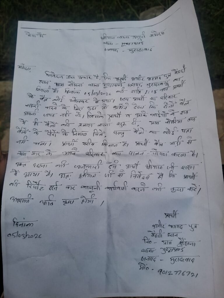 अज्ञात चोरों ने किसान के दो बैल किए चोरी, पीड़ित किसान ने थाने में तहरीर देकर की कार्रवाई की मांग