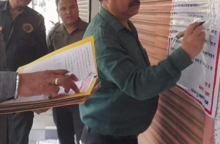 पार्श्वनाथ प्लाजा में की नगर निगम ने चार दुकानें सील, अवकाश के दिन में भी नगर निगम का वसूली अभियान रहा जारी