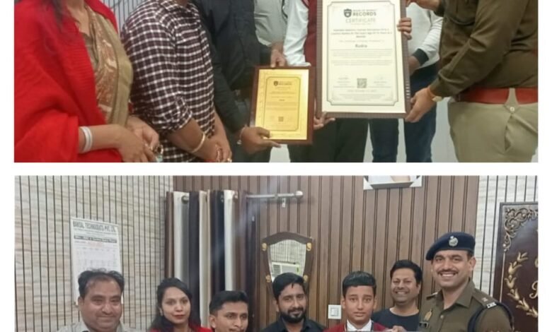 रुद्र की इस असाधारण उपलब्धि पर पुलिस अधीक्षक नगर व्योम बिंदल ने सोमवार को अपने कार्यालय में सम्मानित किया।