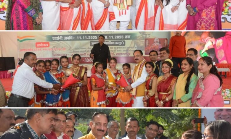 सहारनपुर उत्तर प्रदेश खादी तथा ग्रामोद्योग बोर्ड, सहारनपुर द्वारा भव्य सहारनपुर खादी महोत्सव, 2025-26 का आयोजन कम्पनी बाग, बेहट रोड, सहारनपुर में 11 नवम्बर से 20 नवम्बर 2025 तक किया जा रहा है। प्रदर्शनी का उद्घाटन विधायक नगर राजीव गुम्बर द्वारा फीता काटकर किया गया। उद्घाटन के उपरान्त राजीव गुम्बर द्वारा प्रदर्शनी में विभिन्न शहरों एवं राज्यों से आयी उत्कृष्ट इकाईयों का भ्रमण कर अवलोकन किया गया तथा महात्मा गांधी जी की मूर्ति का माल्यार्पण कर दीप प्रज्वलित किया गया। इस अवसर पर आर्य कन्या विद्यालय की छात्राओं द्वारा सरस्वती वन्दना तथा स्वागत गीत प्रस्तुत किया गया। विधायक राजीव गुम्बर द्वारा स्वदेशी उत्पादों को बढावा देते हुए अपनाने का आग्रह किया गया तथा अलग-अलग राज्यों एवं जनपदों से आयें उद्यमियों को प्रेरित किया गया एवं स्टॉलों में लगे उत्पादों की सराहना की गयी। कार्यक्रम के अंत में प्रदर्शनी के आयोजक परिक्षेत्रीय ग्रामोद्योग अधिकारी प्रदीप कुमार द्वारा विधायक राजीव गुम्बर जी एवं अन्य अधिकारी, बन्धुओ व उपस्थित आंगनवाडी कार्यकत्री, स्वयं सहायता समूह की महिलाओं का धन्यवाद ज्ञापित किया गया। प्रदर्शनी में 13 नवम्बर 2025 को सायं 5.30 बजे ‘‘खादी एक विचार’’ आयोजित किया जायेगा। इस अवसर पर जिला ग्रामोद्योग अधिकारी, मुज़फ्फरनगर सोम प्रकाश, ज़िला ग्रामोद्योग अधिकारी, शामली जुगल किशोर, ज्येष्ठ लेखा परीक्षक आर0एस0 भदौरिया व खादी ग्रामोद्योग विभाग के सेवानिवृत्त तथा वर्तमान स्टॉफ उपस्थित रहे।